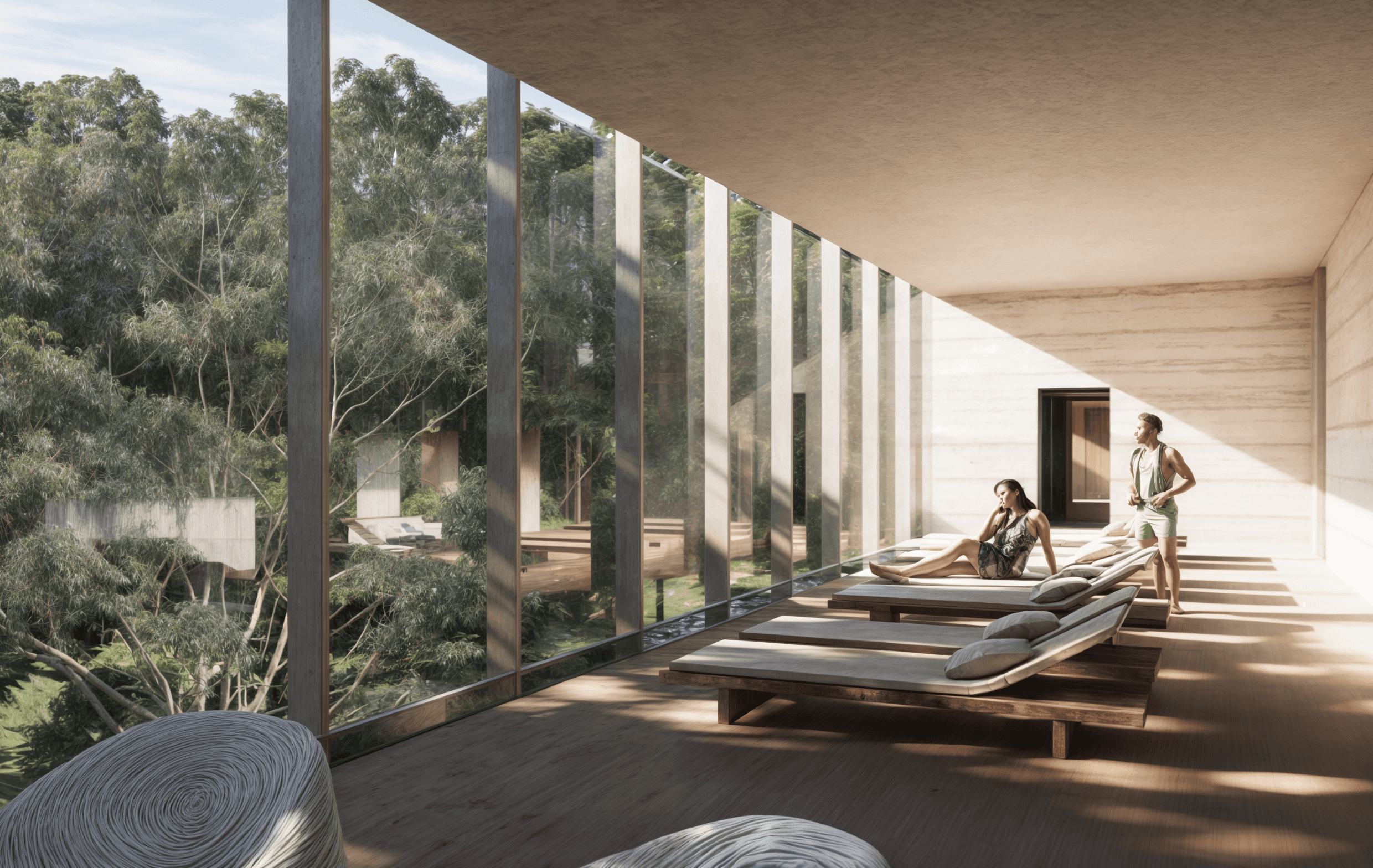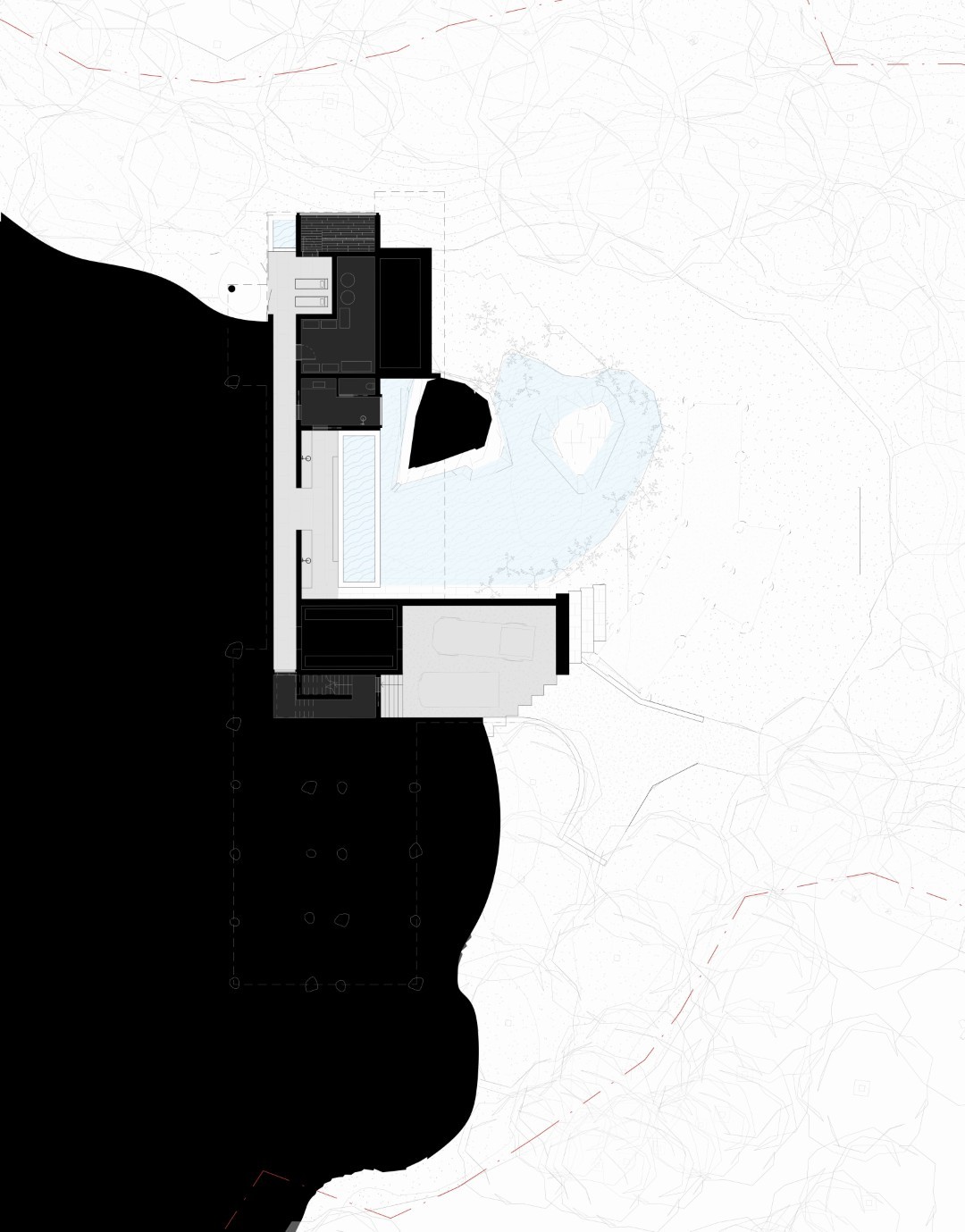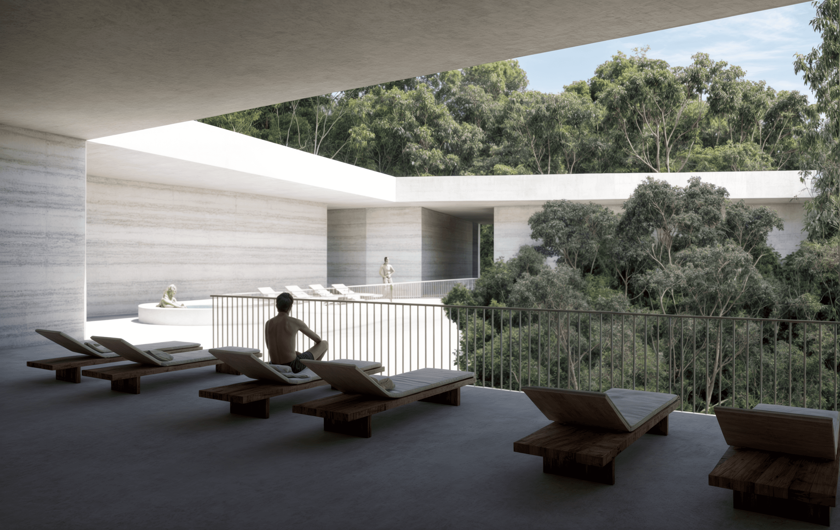 Tawarri Baths is a contemporary geothermal retreat situated along the historic foreshore of Dalkeith. Informed by the slow erosion of limestone, the building is carved around a central planted gorge—an open void that connects each level through light, water, and landscape. Across 4,400m² of enclosed and open-air space, the experience unfolds as a procession: from shaded pools and wellness rooms, to rooftop waterlines and river-edge gardens.