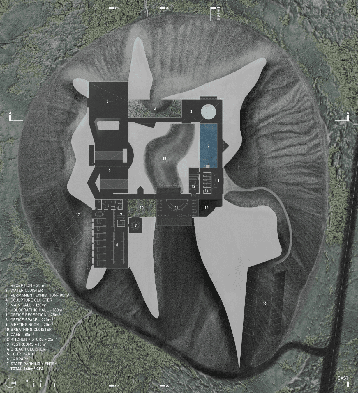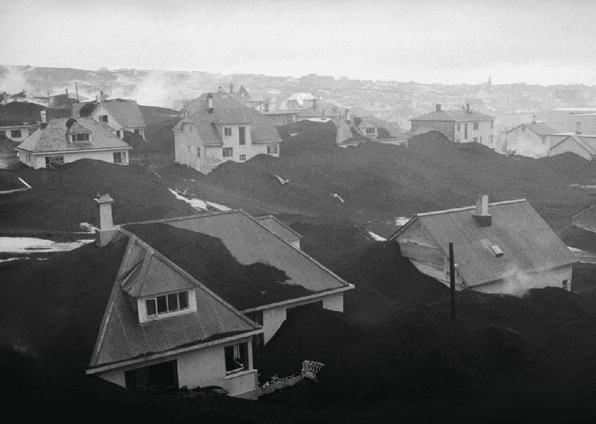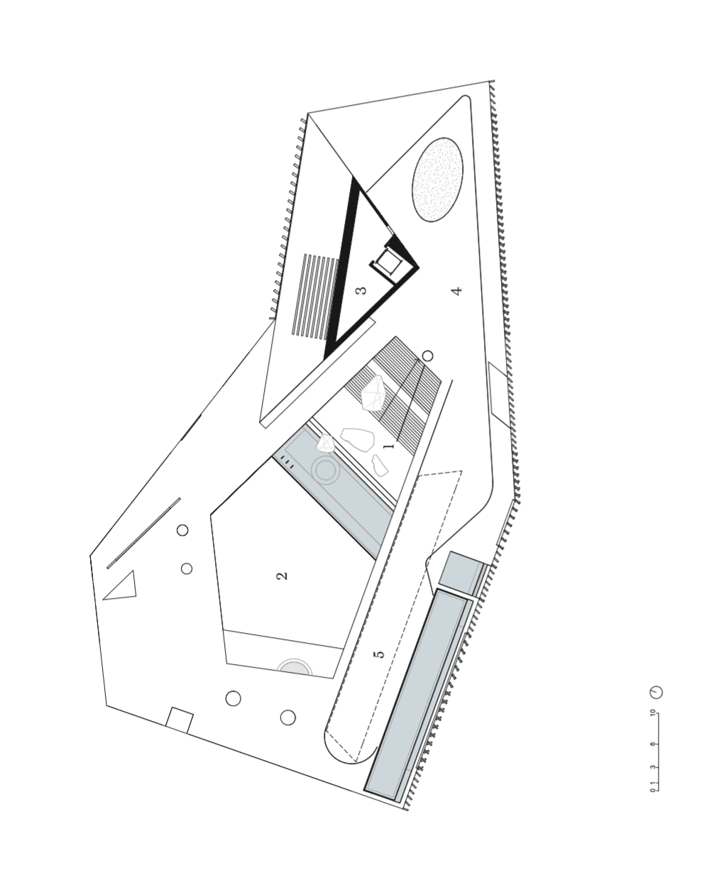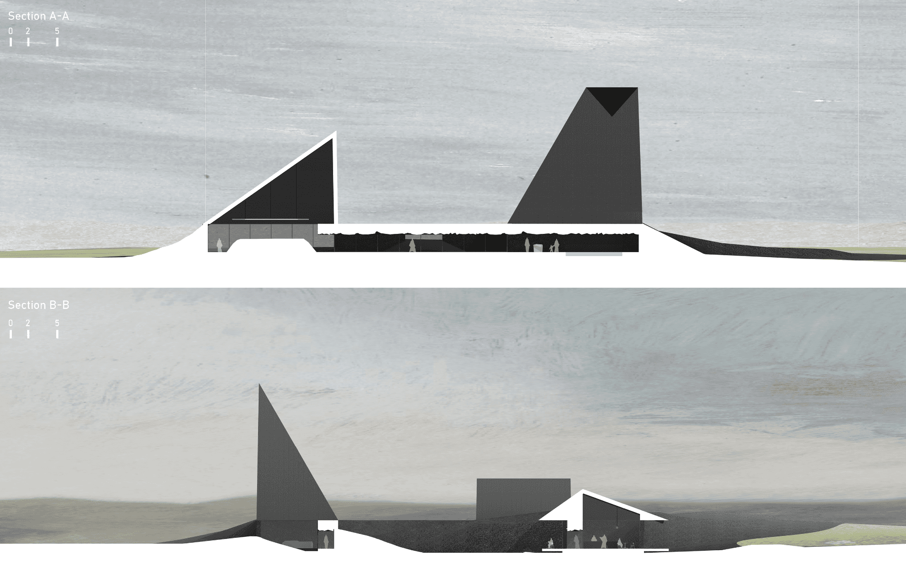 This proposal is part Eldfell homage and architectural experiment by way of carving within a post-landscape topography where a museum of pitched roofs is blanketed by black ash dunes as though it’s been buried beneath a plume of a volcano eruption such as the near-by Hverfjall. The form creates a tension as the museums silhouette mimics the mountainous landscape with the affecting domestic emotions of the humble pitched roof - evoking the buried homes of Eldfell. It’s presence on the horizon provides a landmark of curiosity with an introverted experience within that embeds the explorer beneath the earth, allowing them to regain their own sense of scale.