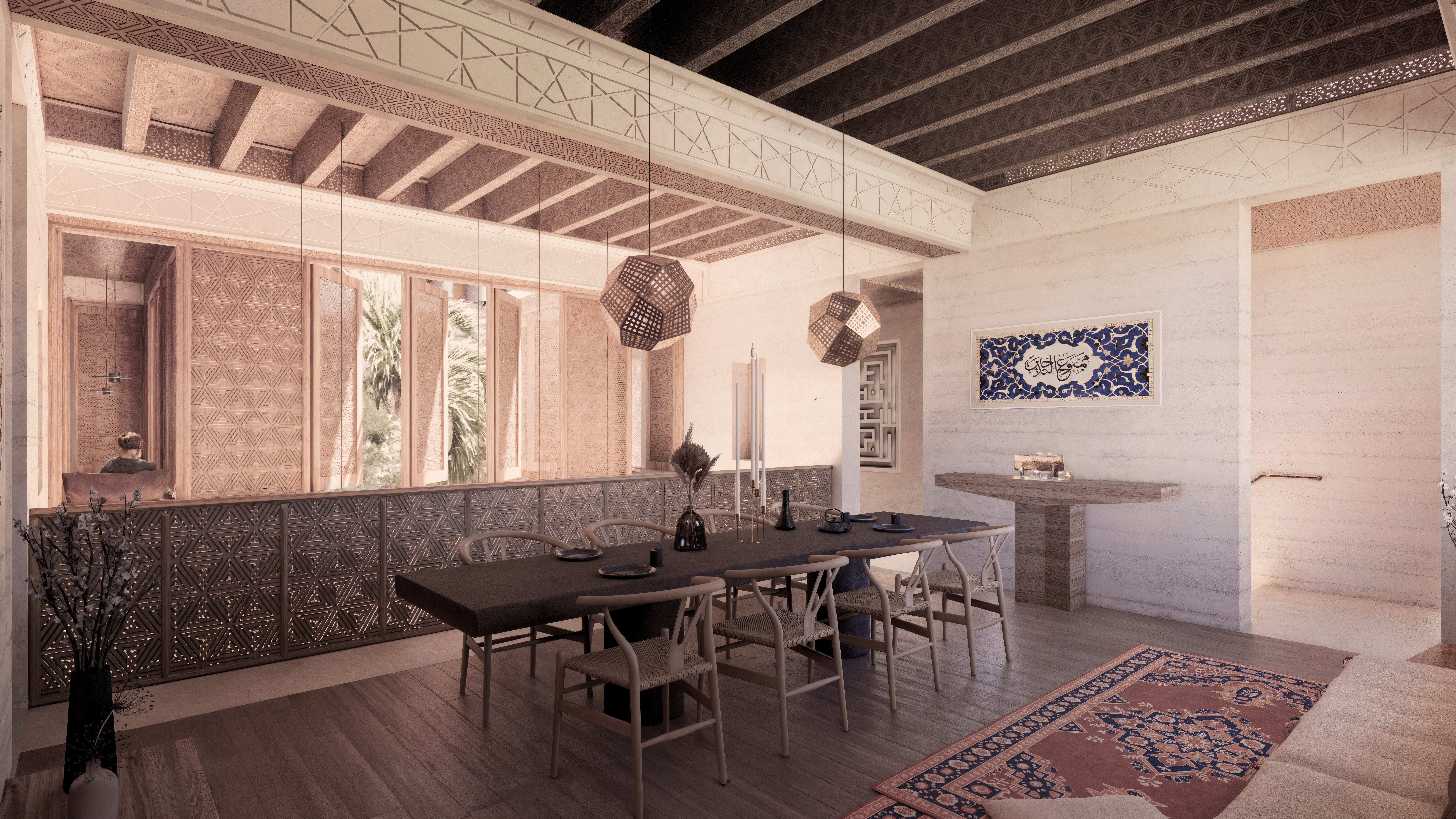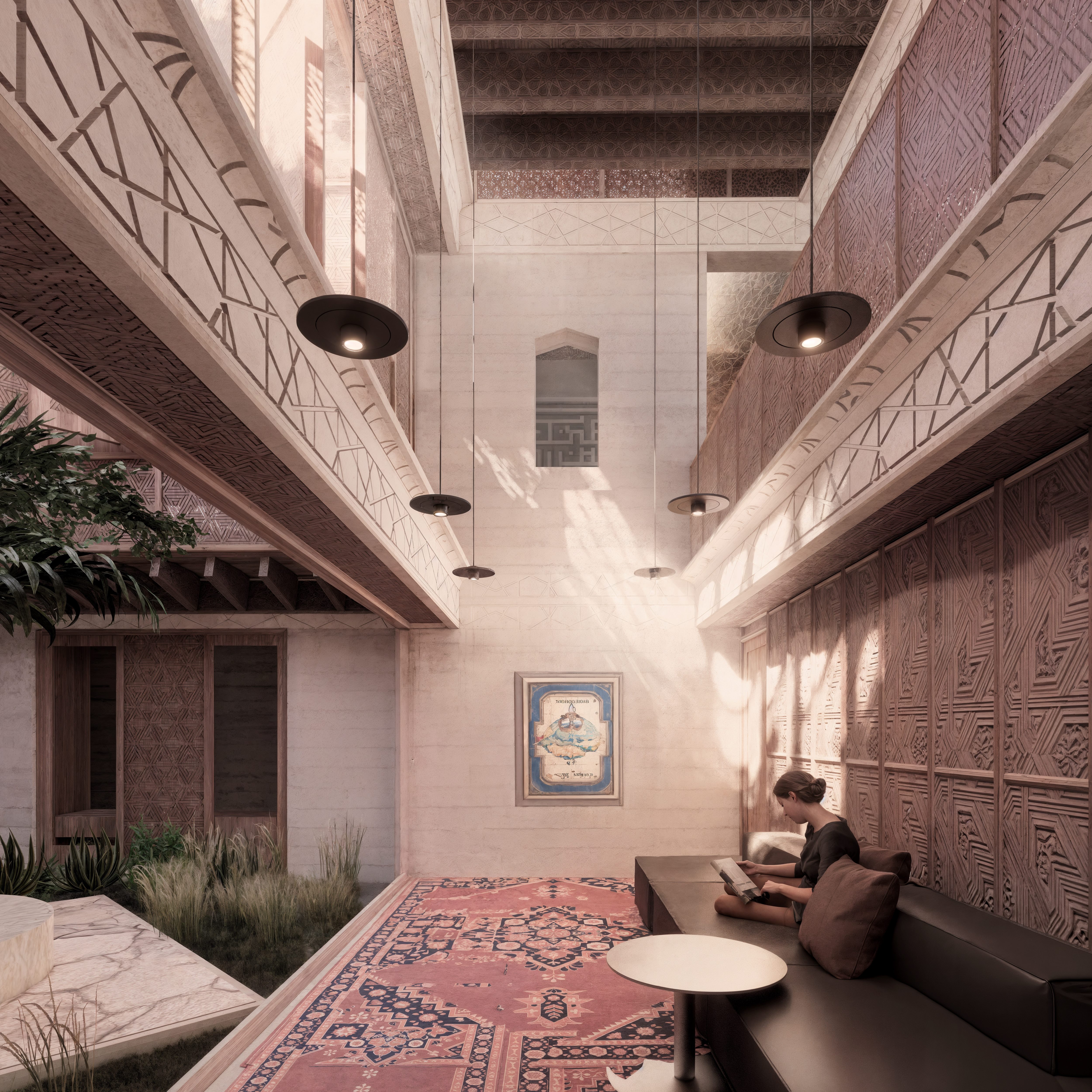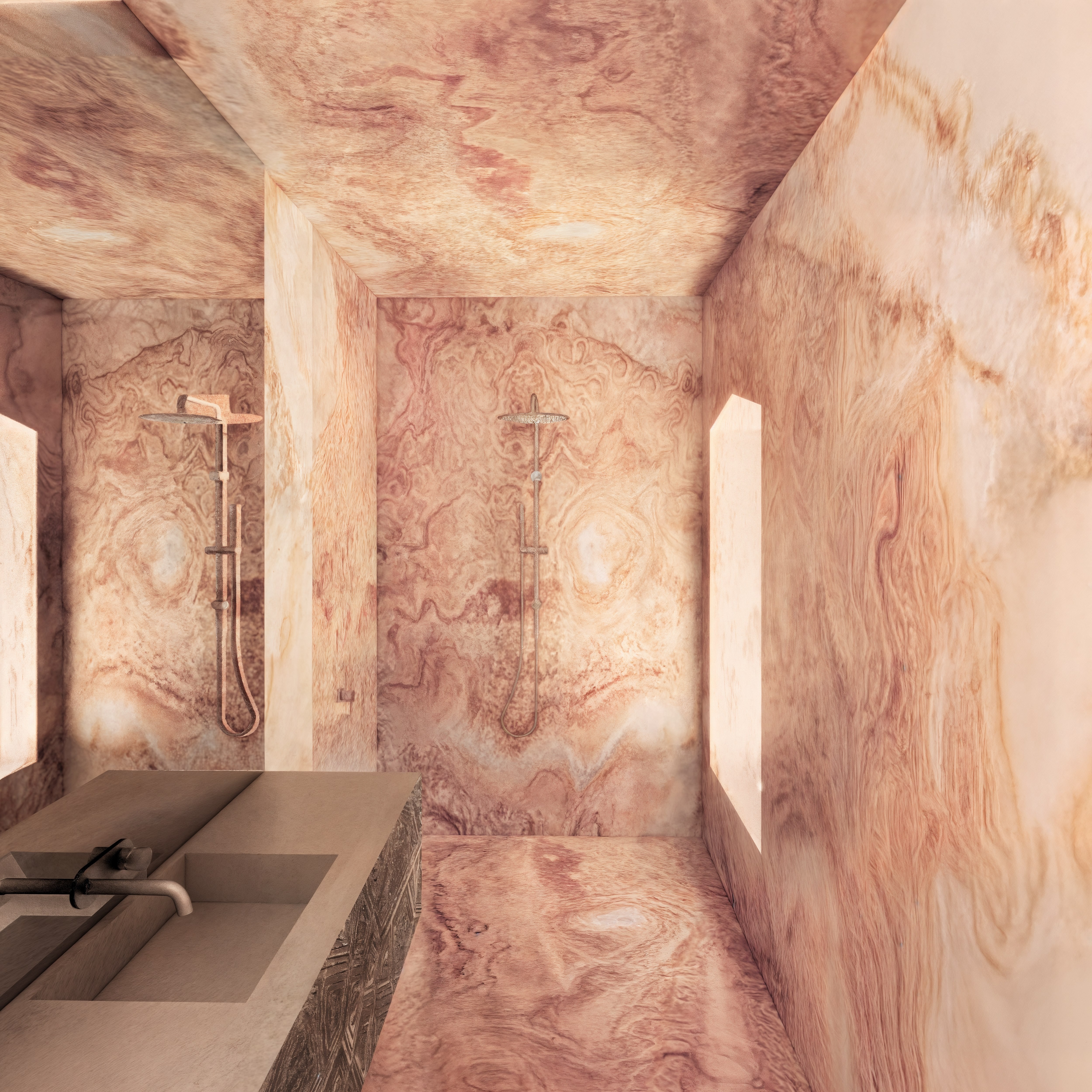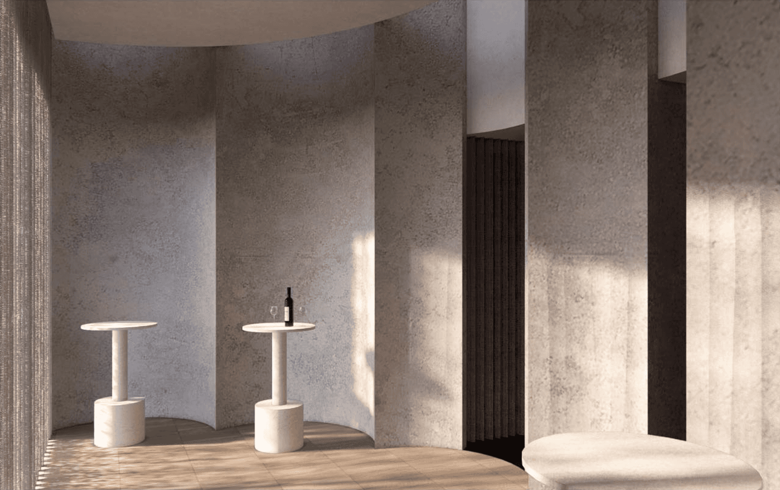 The material palette is grounded in place—local stone, warm timber, and textured surfaces echo the surrounding geology and flora. Interiors shift between cool and warm zones, mirroring the natural patterns of Western Australia’s climate and terrain. Spaces are composed not as spectacle, but as atmosphere—offering moments to bathe, rest, and return.