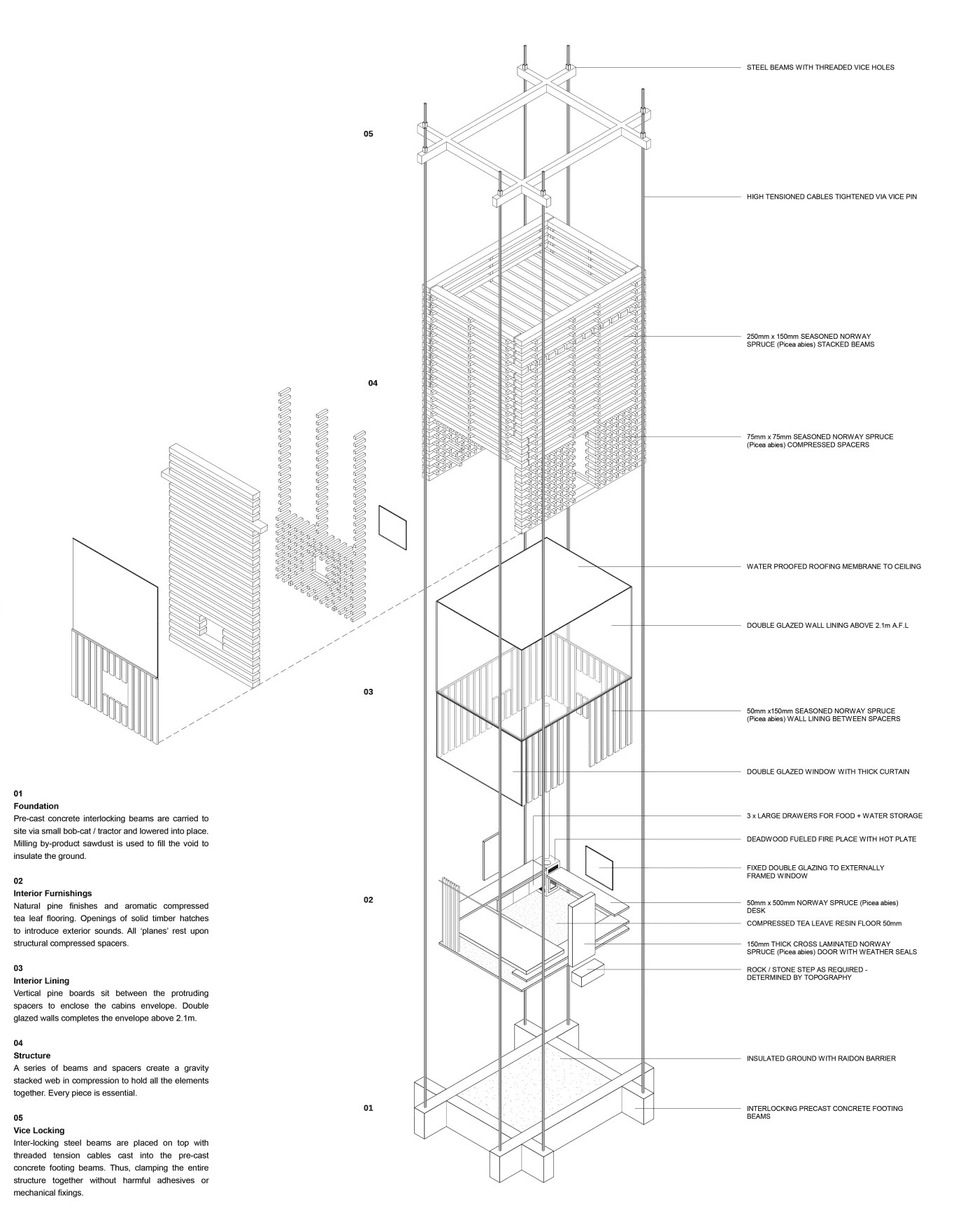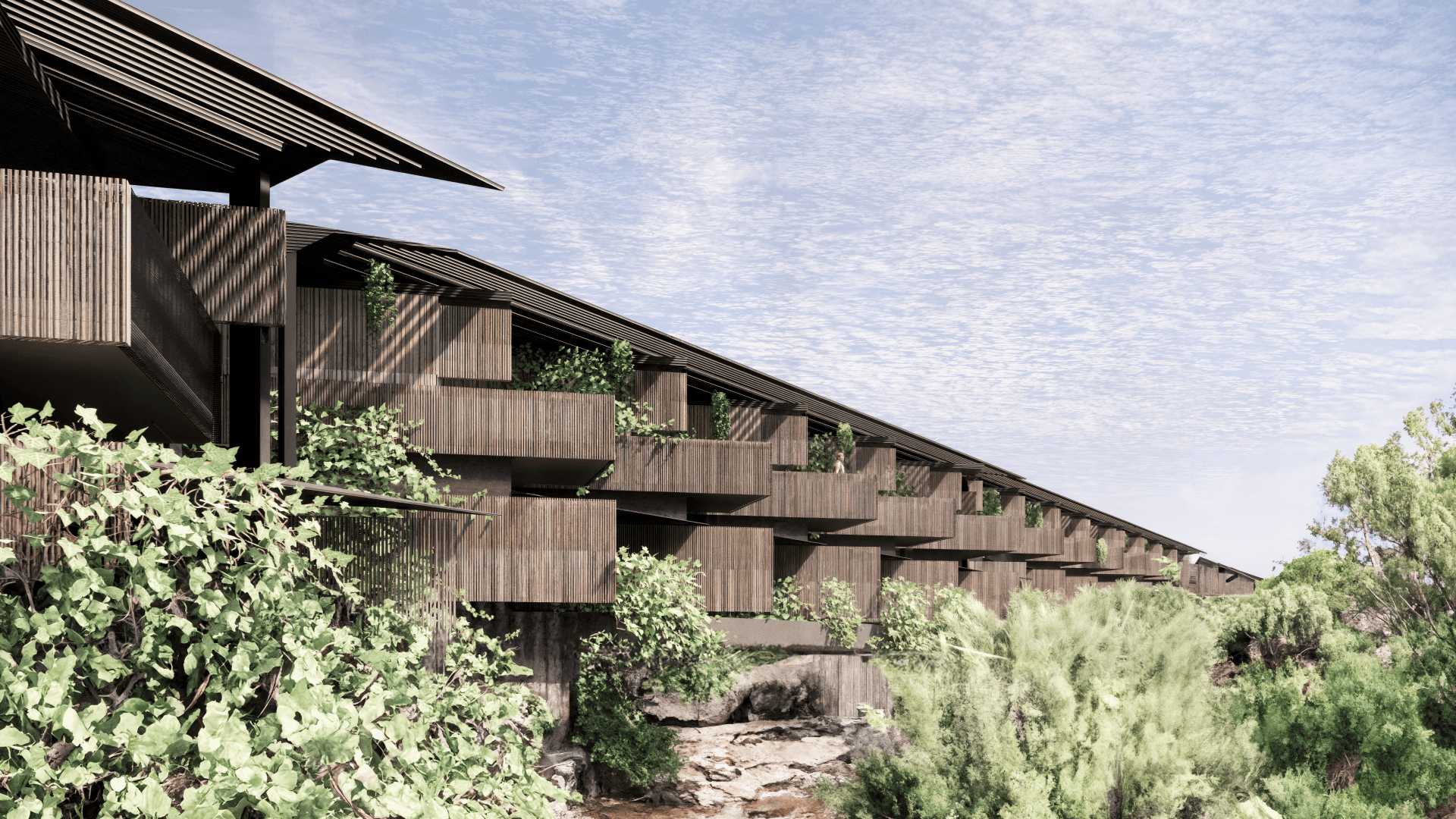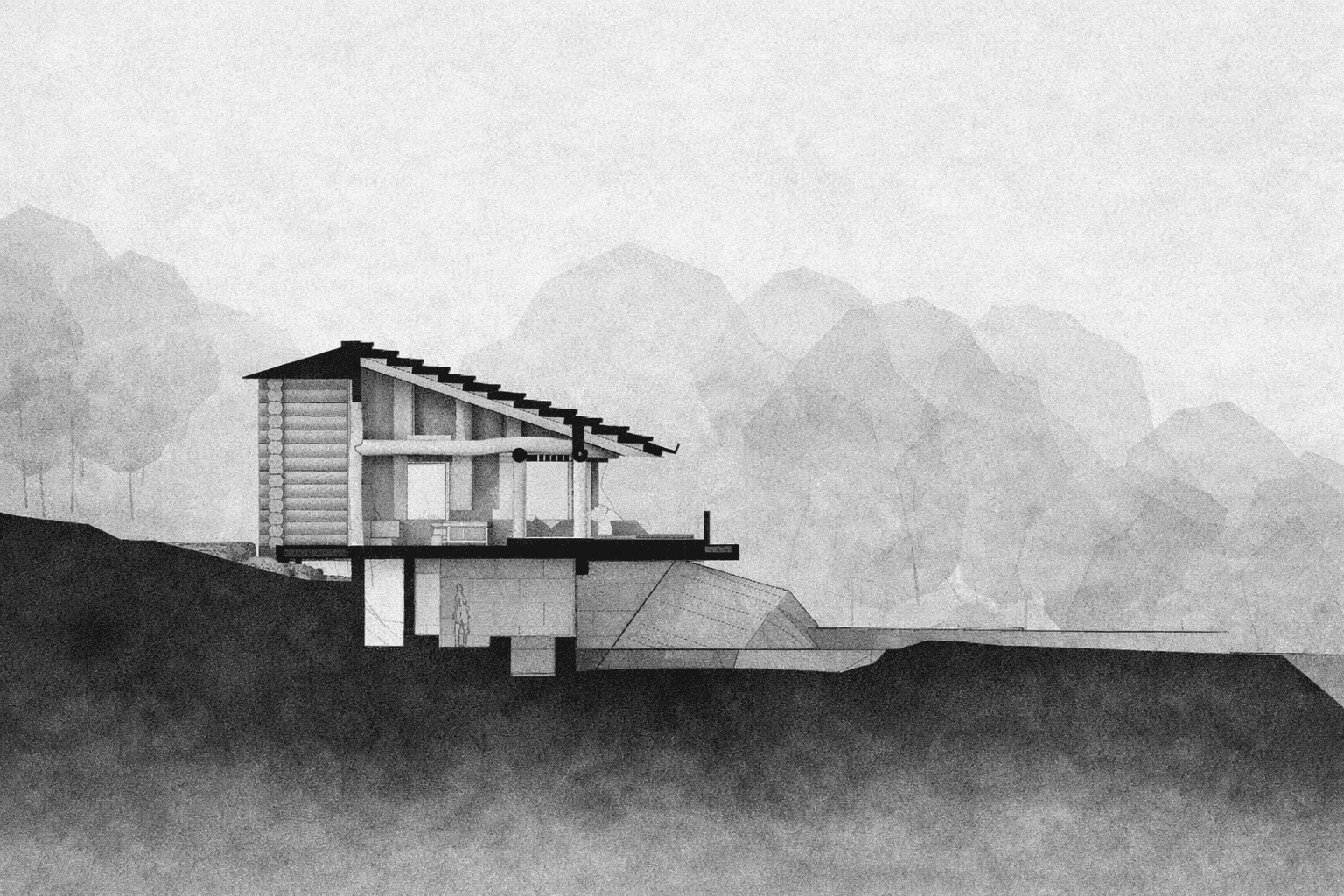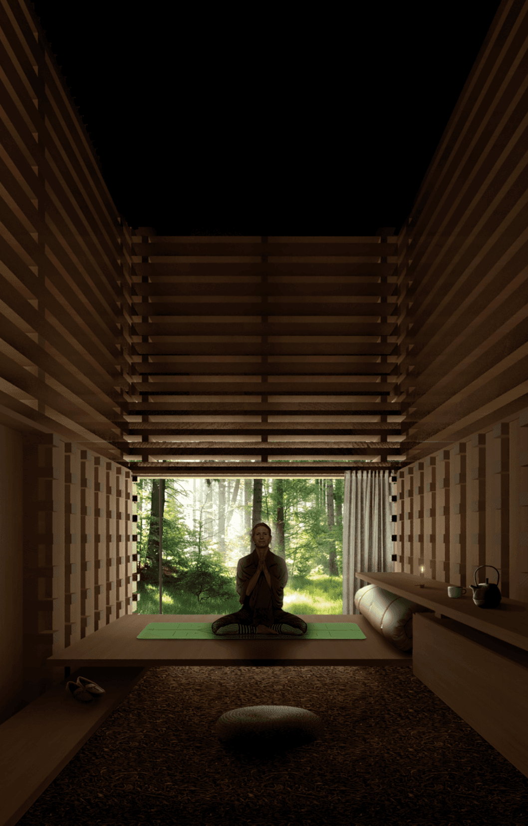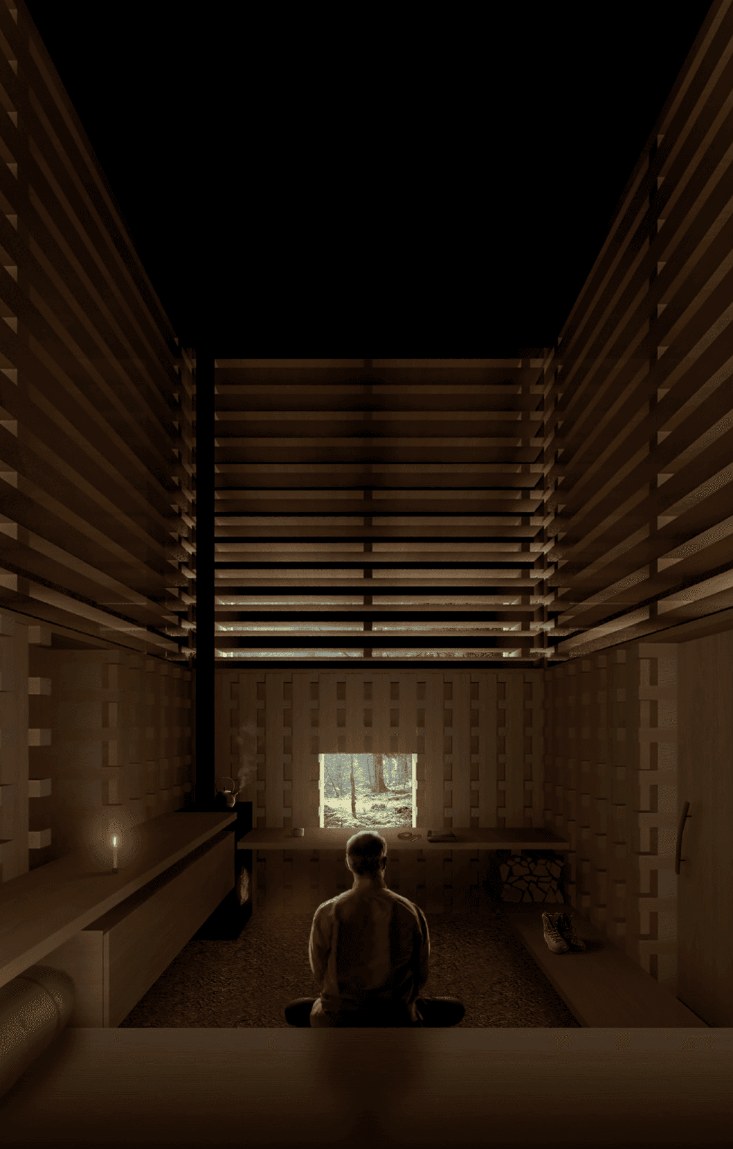 This project was developed as part of an international competition for NOT A HOTEL on Yakushima Island, Japan. The proposal explores a quiet architectural response to a landscape where steep mountains, dense cedar forests, granite formations, and the ocean exist in close proximity.