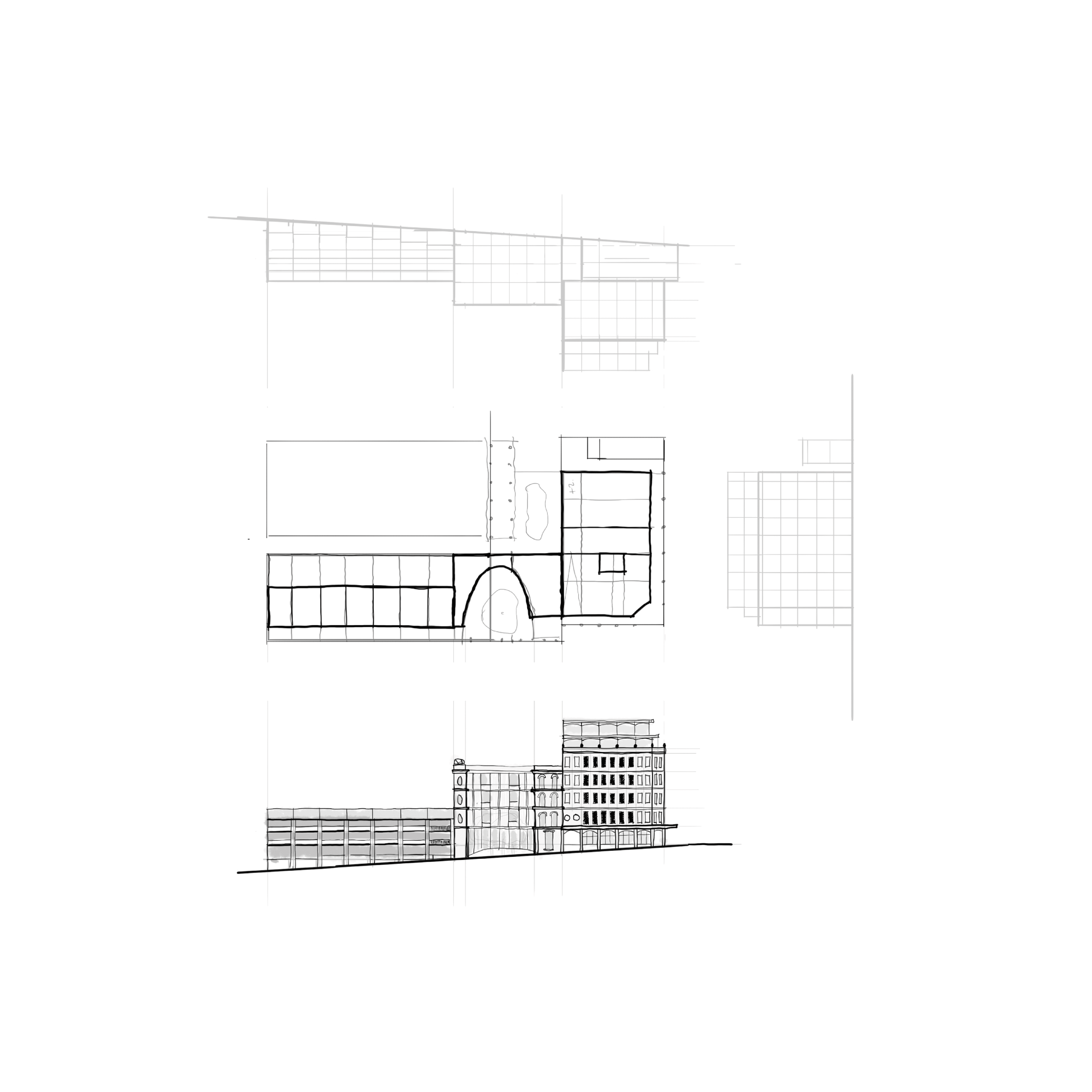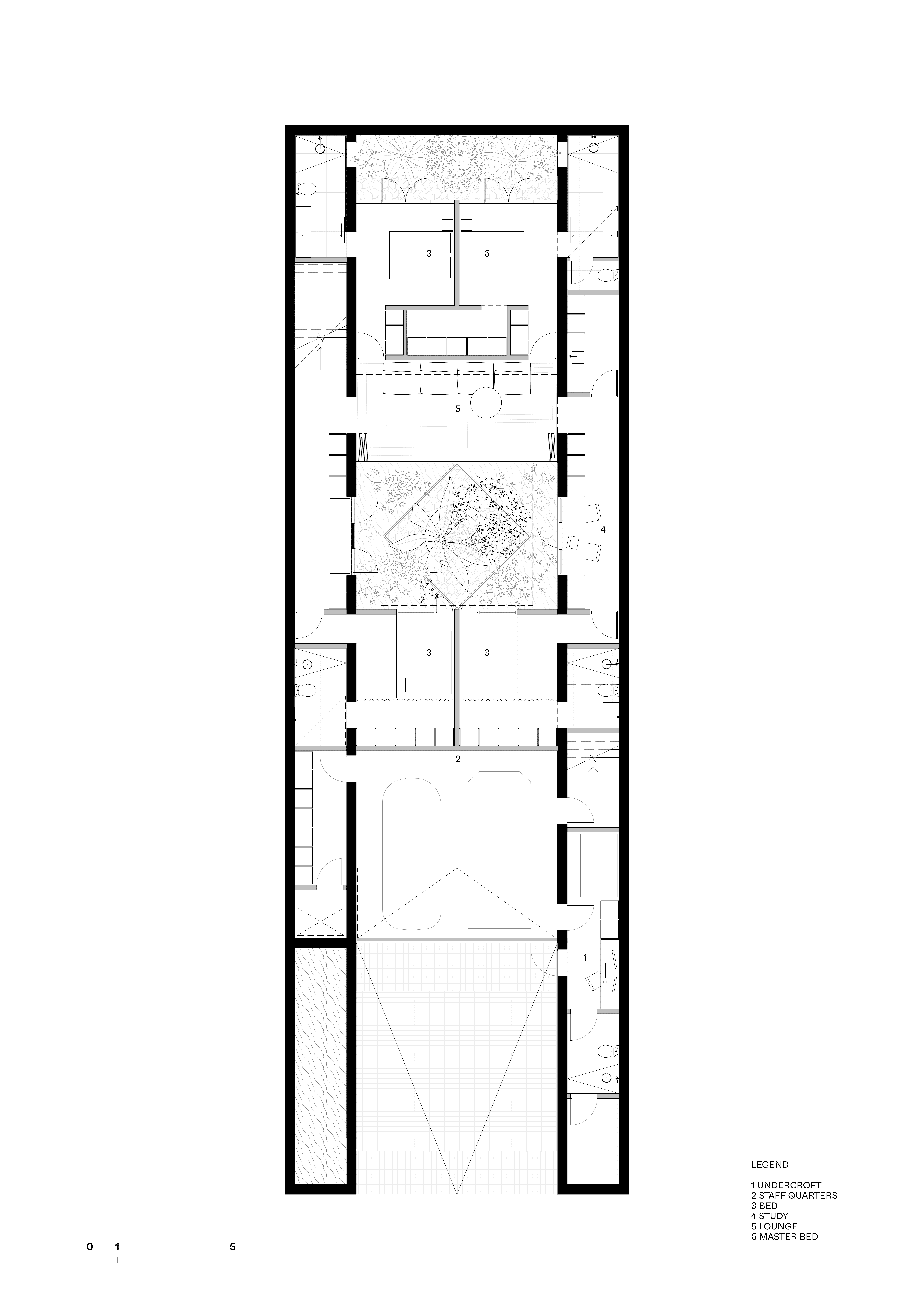 The development features an ensemble of four typologies to support a diverse range of social and commercial interactions, all arranged to suit the existing road tunnel and site conditions. [1] row of terrace housing, inspired by the Victorian and Edwardian terrace houses that are a defining feature of the area’s streetscape, helps to stitch the development into the surrounding neighbourhood and contribute to it’s character. [2] cultural building (such as a museum or gallery) serves as the terminated vista from Robinson Street and embraces an existing tree to form a semi-cloistered public gathering space. [3] mixed-use building of commercial and street level retail spaces helps to barricade the main road of William Street, with small laneways creating social intimacy between each building. [5] The refurbishment of 132 William Street serves as the historical anchor of the development, with [4] the tower as a backdrop that houses a blend of office and cultural/civic amenities with river views and grand multifunction spaces on its top levels.