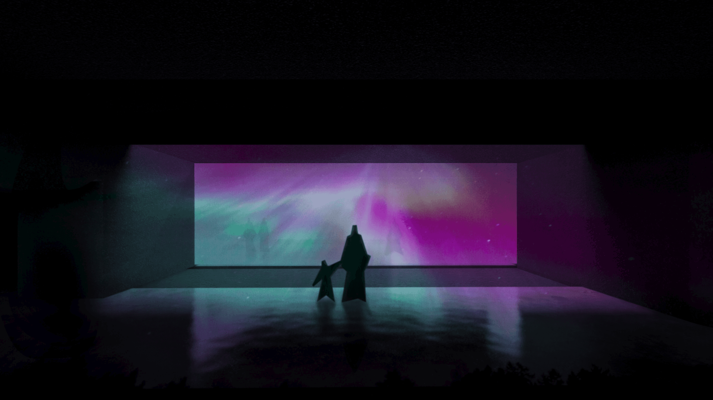 HOLOSCENE® is an exploration in light, space and graphic projection. The aim is to achieve an atmosphere that transcends any current exhibition medium. The holographic technology exists today, although, we are yet to utilise its full potential. Ourselves and artists alike are able to manipulate space and light with visual projections that will blur the boundary of architecture and the two dimensional screens that were forever starring at. This will be the confluence of the digital and physical world, in space and time.