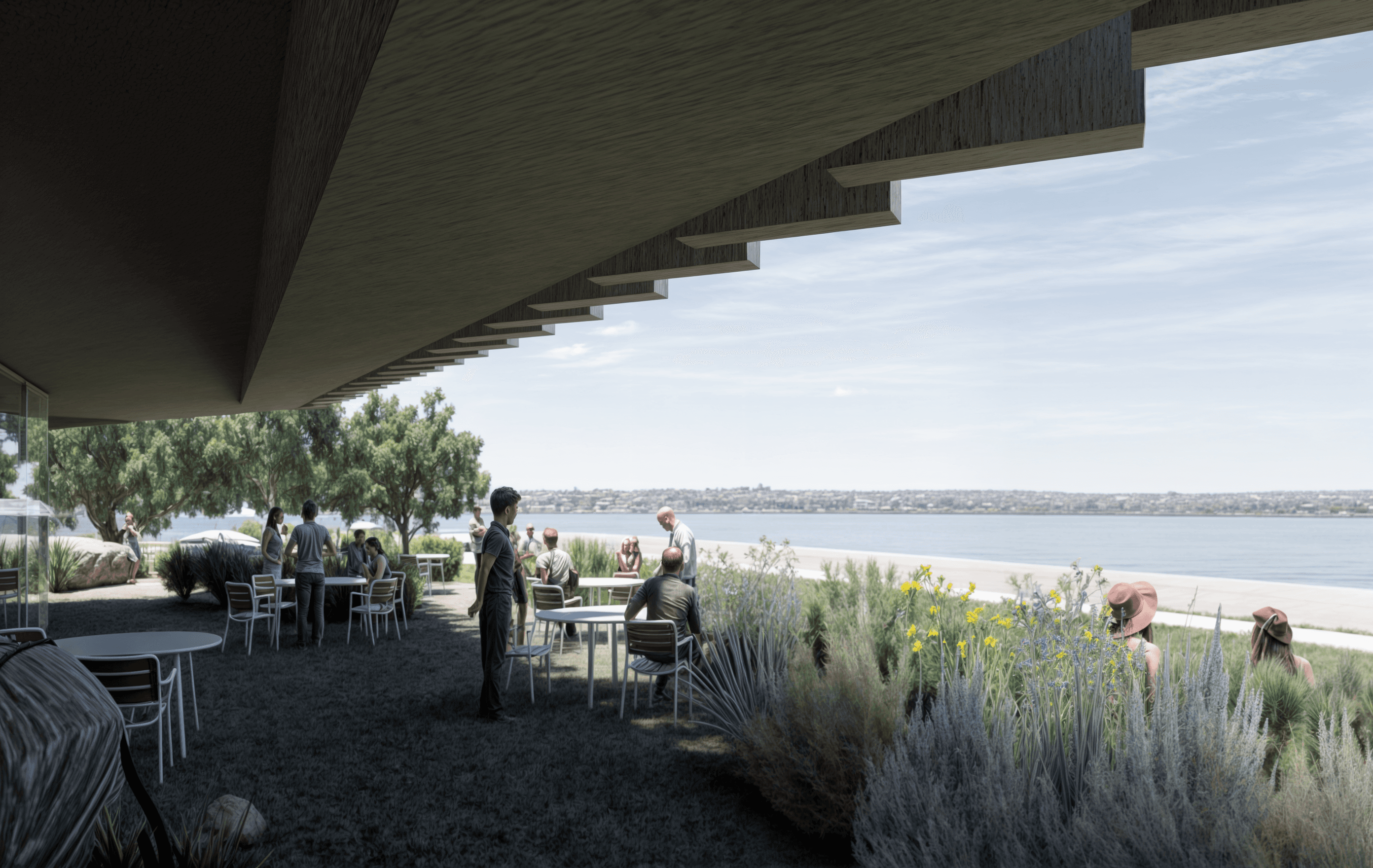 Tawarri is a civic place shaped by country, light, and water: a building that invites pause, reflection, and quiet renewal.