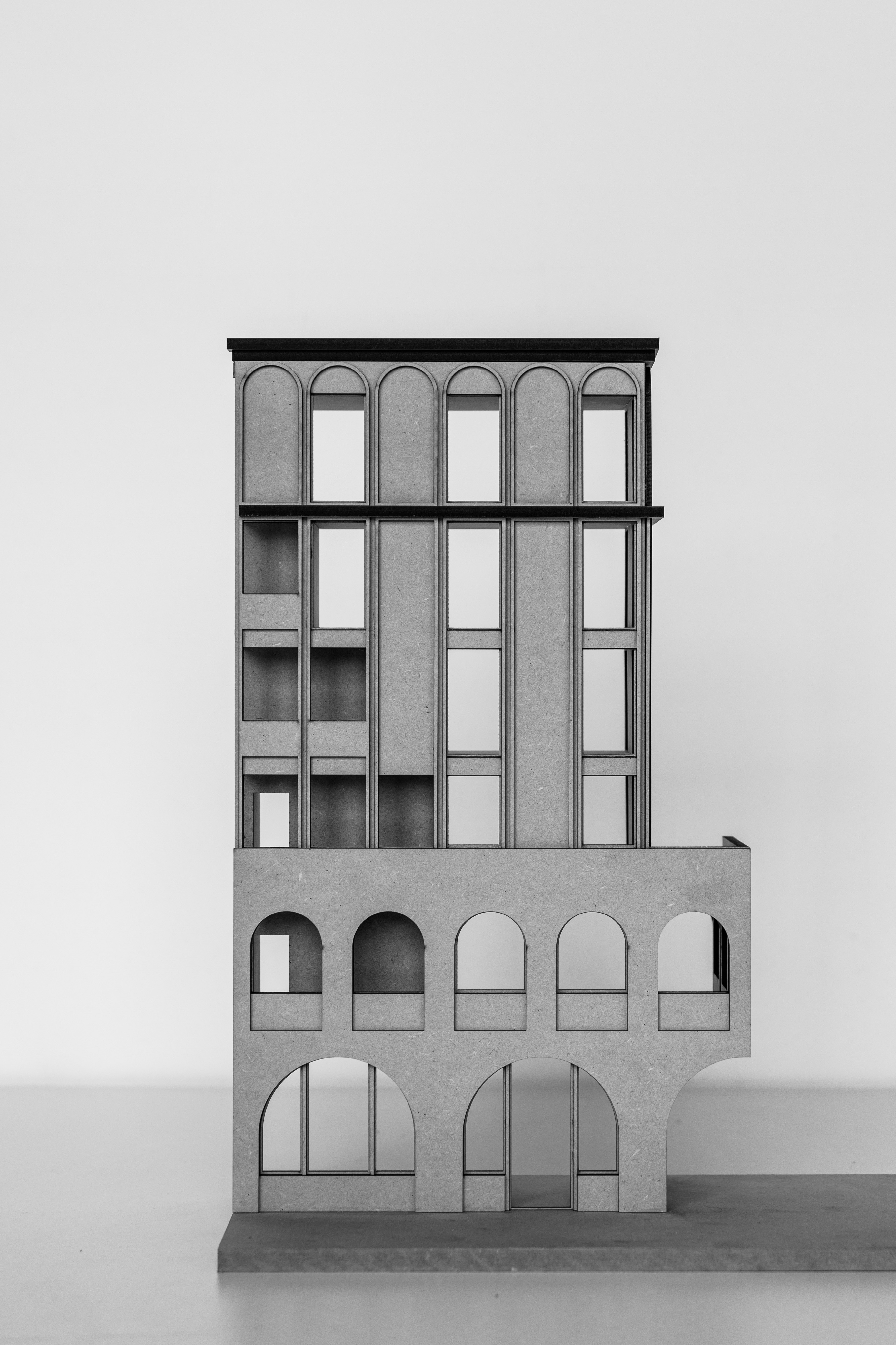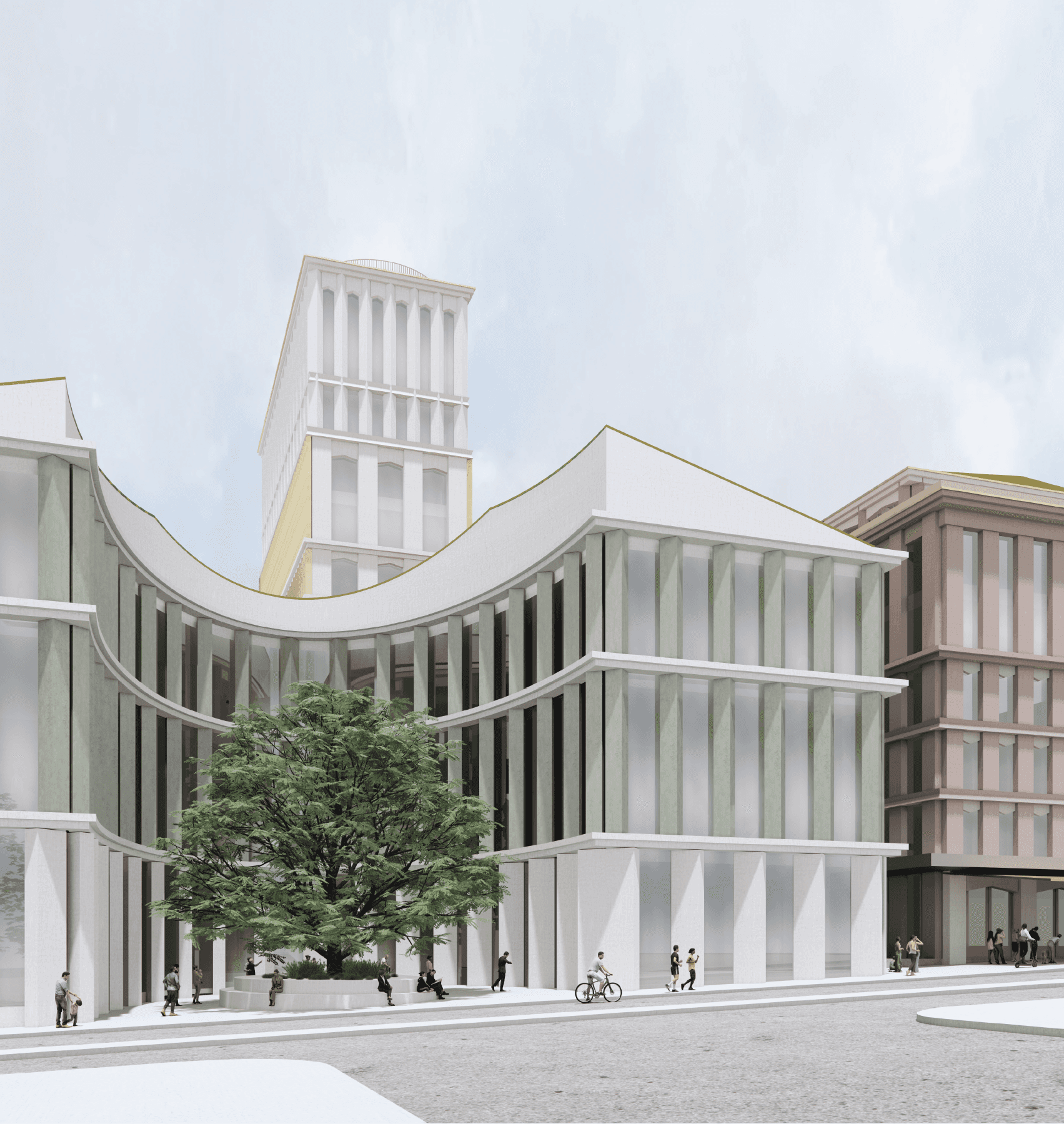The development makes a significant contribution to the local neighbourhood by using locally sourced materials and stone aggregates to form the detailed finishes of the façade and street-level materiality, thus anchoring the project to its geology and emphasising its belonging to its context.